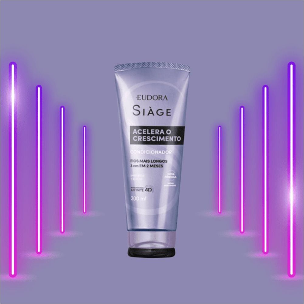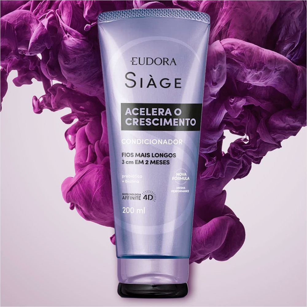 Este condicionador da linha Siàge Acelera o Crescimento possui uma fórmula avançada que age profundamente nos fios, oferecendo uma experiência completa de cuidado e fortalecimento capilar.