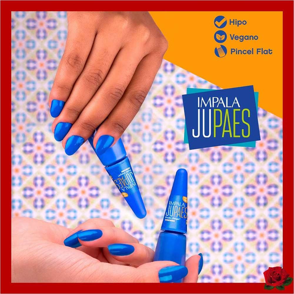 Apresentando a cor intensa Pode Chegar, este esmalte faz parte da coleção exclusiva Impala Ju Paes Pode Chegar!, uma parceria inspiradora que celebra a esperança, o otimismo e a força da mulher brasileira. Com uma fórmula de acabamento cremoso, o esmalte garante secagem rápida e um brilho intenso que dura muito mais tempo. Inspirada no autêntico jeitinho brasileiro, a coleção reflete a alegria, a vibração e a beleza única do nosso país, proporcionando unhas impecáveis e cheias de personalidade para você arrasar em qualquer ocasião.