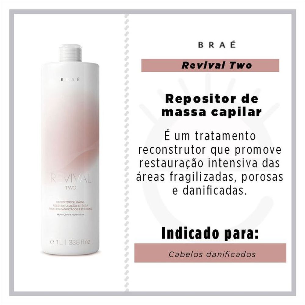 O Tratamento Reconstrução Braé Revival Two 1000ml da Brae oferece reconstrução profunda e restauração intensiva para cabelos danificados, repondo a massa capilar e fortalecendo os fios.